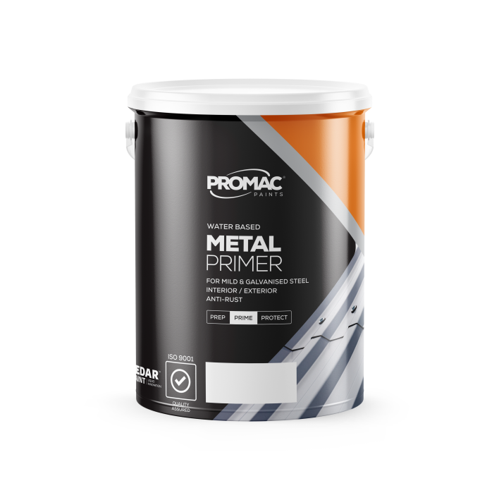 Promac Metal Primer is a water based, high quality, anti-corrosive primer for mild and galvanised steel. It has excellent corrosion, water and chemical resistance while providing optimum adhesion to new or weathered metal.